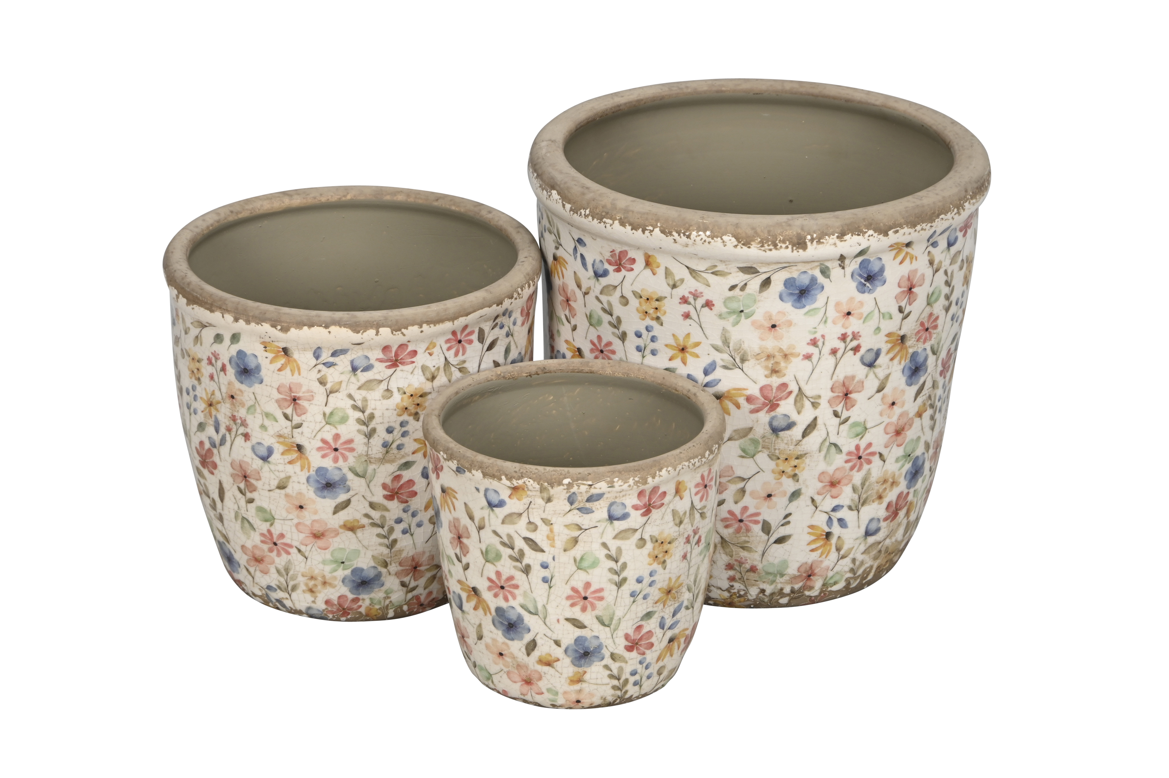 Nostalgische Blumentopf in 3 Größen aus Keramik glasiert.